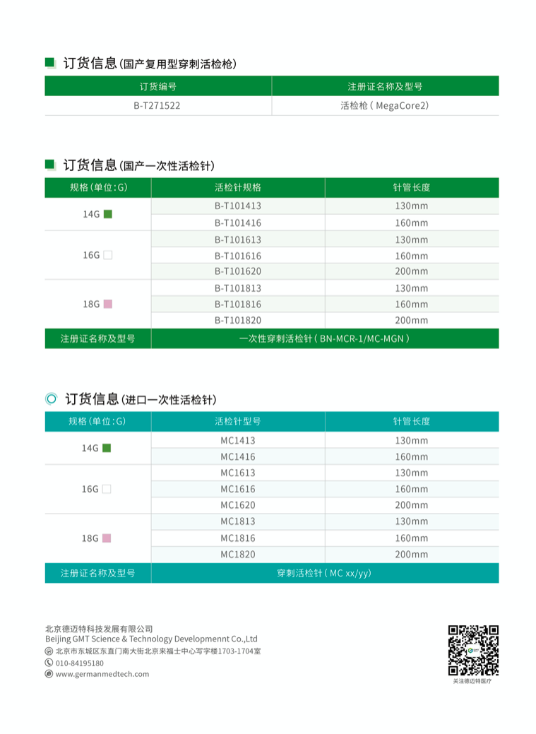 MegaCore2复用型穿刺活检枪及一次性活检针-国产