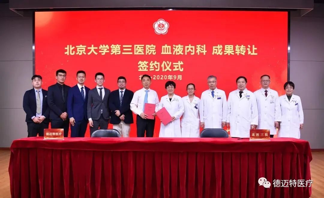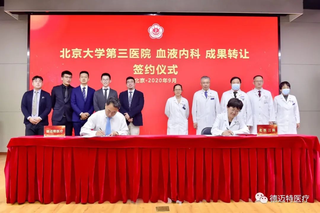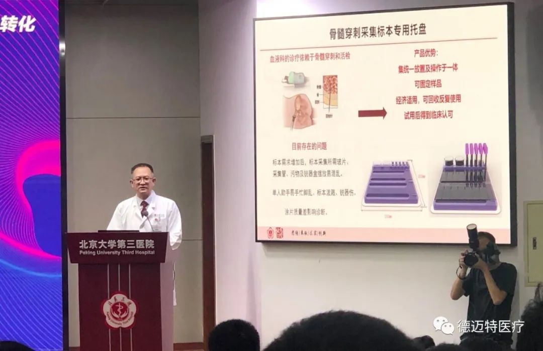 德迈特医疗在此次活动中,正式与北京大学第三医院成功签约的“骨髓穿刺托盘”科技成果转化项目,此项目由北京大学第三医院血液科景红梅主任、董菲副主任团队及德迈特医疗共同研发。