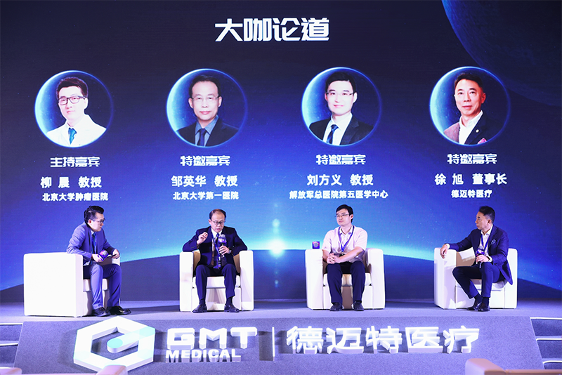 解放军总医院第五医学中心梁萍教授、北京大学第一医院邹英华教授,北京大学肿瘤医院柳晨教授及德迈特医疗董事长徐旭先生、总经理周晨女士共同主持“德迈特医疗新品发布会-北京站”启动仪式。
