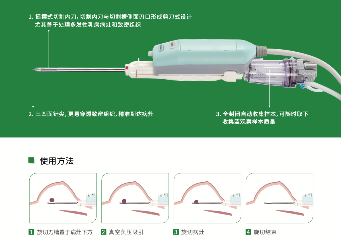通过单次穿刺,快速精准的完成乳腺结节样本的收集,以及良性结节的微创切除,同时达到临床诊断和治疗的目的,已经成为乳腺外科常用的技术方法