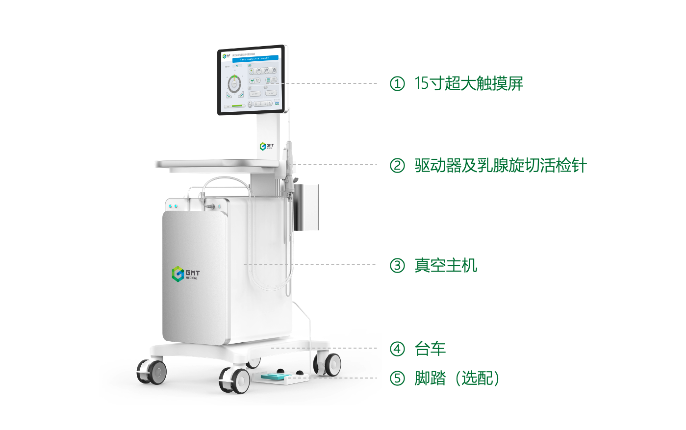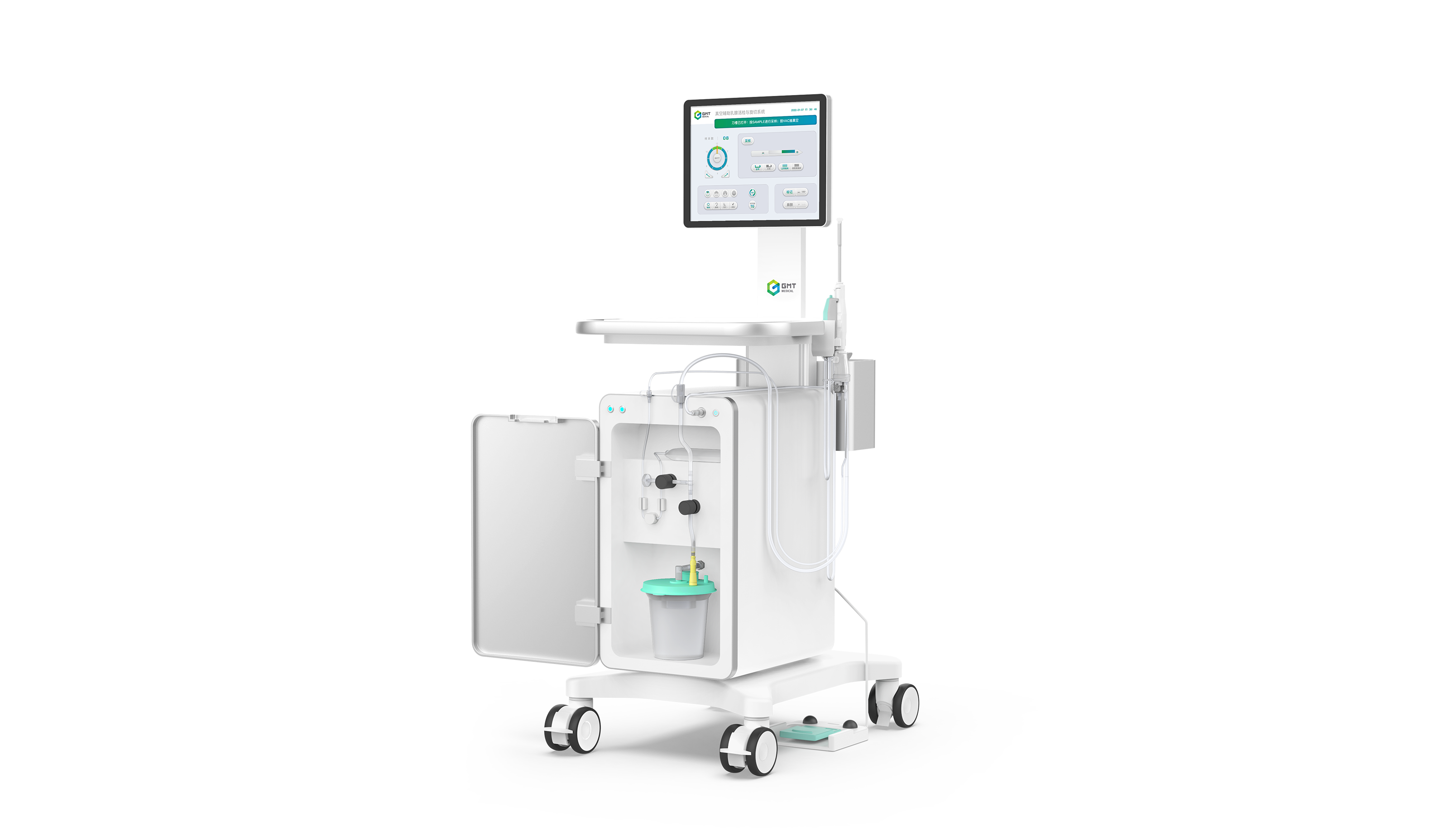 3马达驱动,个性化操作设置:全刀槽/半刀槽模式,减少正常组织切除,以及保证特殊部位操作;正常组织/高密度组织模式,轻松应对致密腺体和钙化病灶;60、180、240、360度切割范围及角度调整功能,简化临床操作;自动冲洗功能,清楚观察切除组织切缘;麻药补充功能,应对术中麻药不足