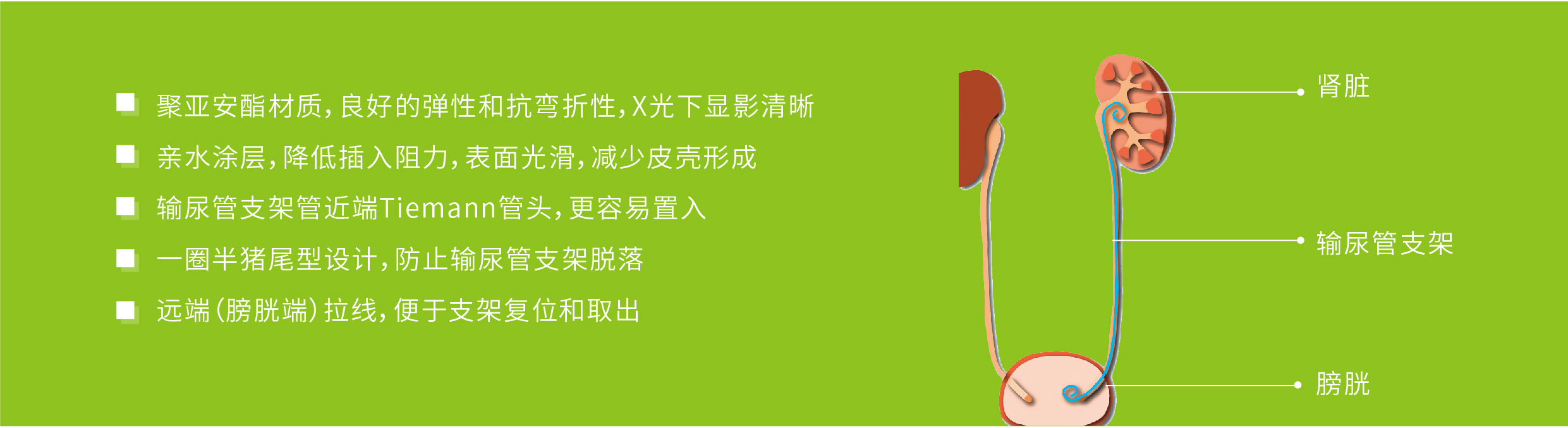 一圈半猪尾型设计,防止输尿管支架导管脱落